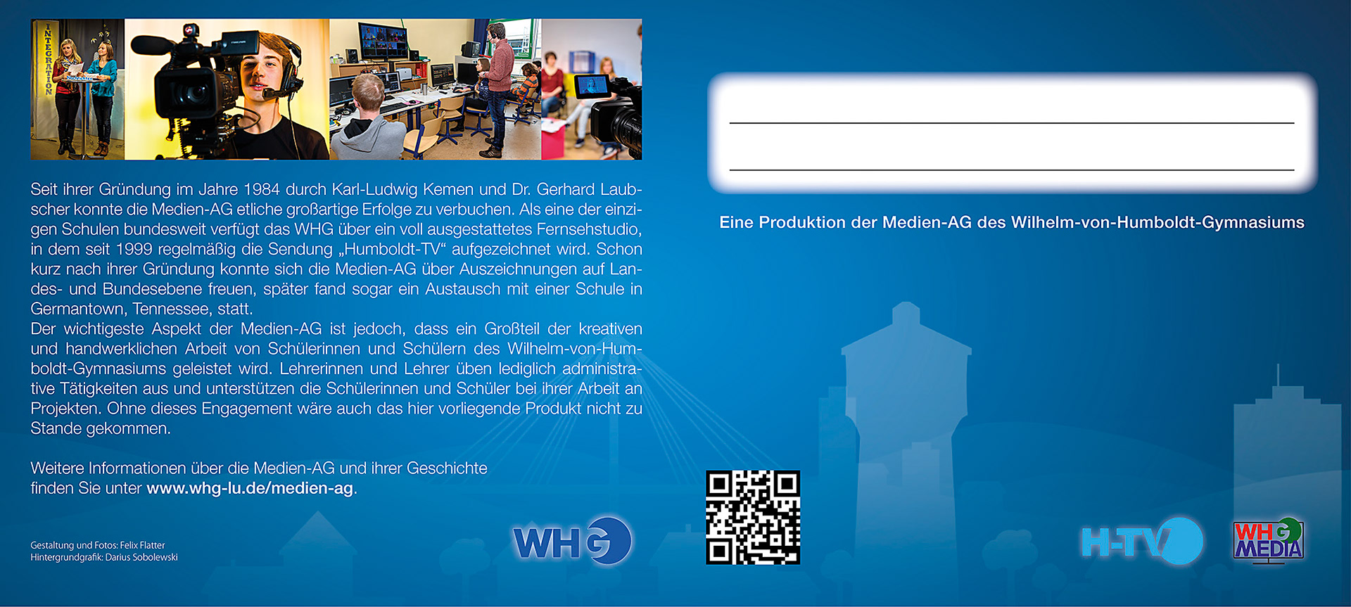 DVD-Hüllen für die Medien-AG des Wilhelm-von-Humboldt-Gymnasiums Gestaltung und Fotos: Felix Flatter / Hintergrundgrafik: Darius Sobolewski Vorder- und Rückseite / Innenseiten