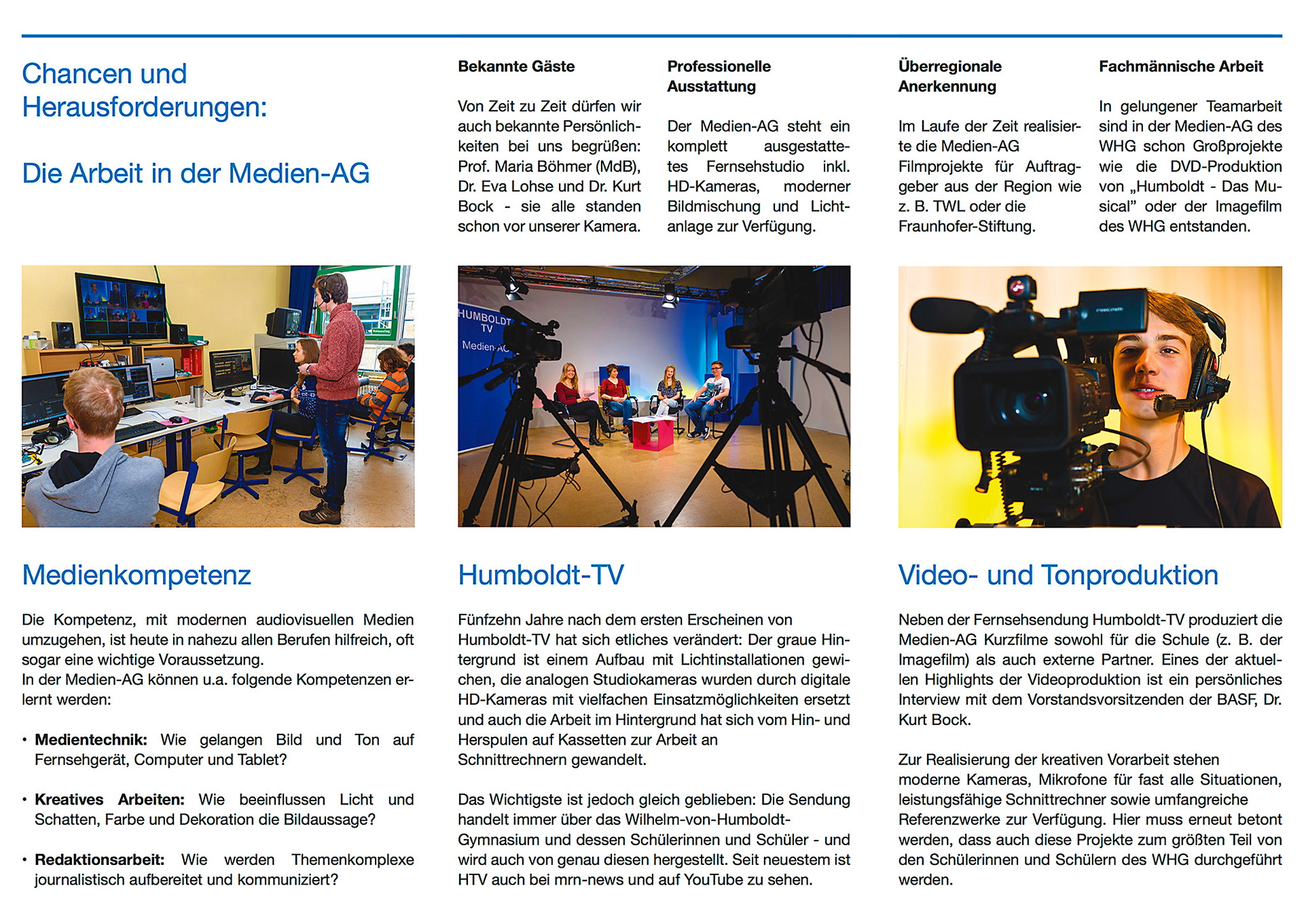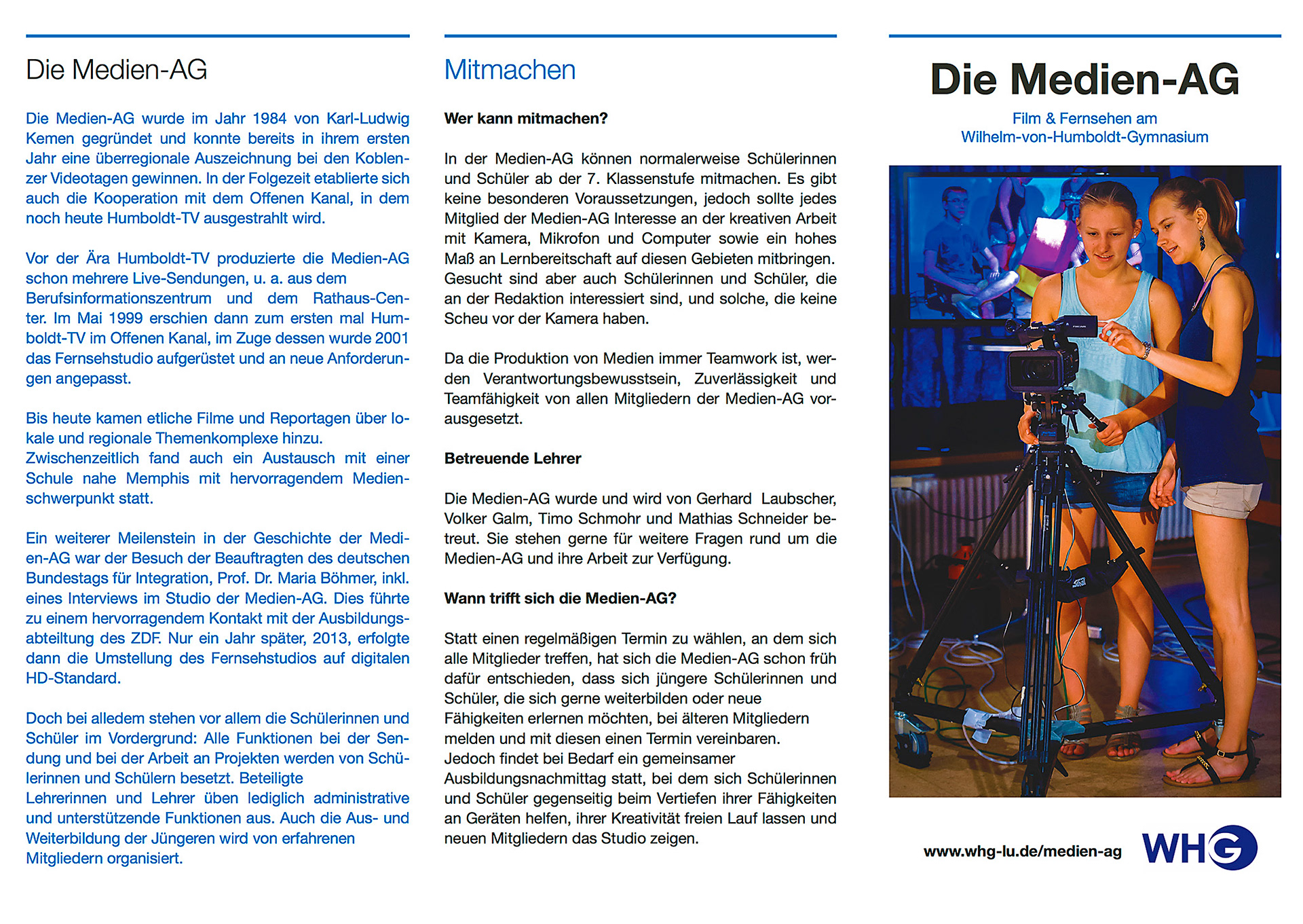 Sechsseitiger Leporelloflyer der Medien-AG des Wilhelm-von Humboldt-Gymnasiums Außenseiten / Innenseiten