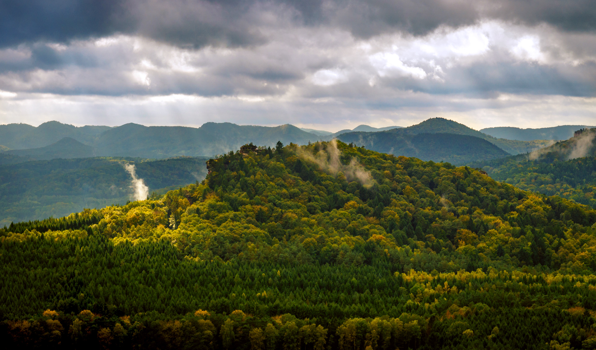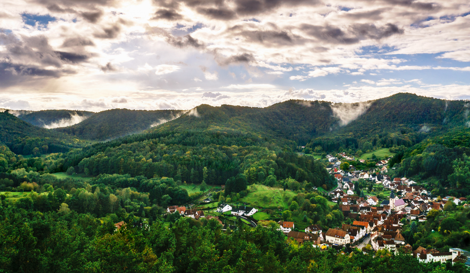 Moosbachtal / Blick vom Drachenfels / Dürrentalbach / Siebeldinger Hütte / Blick von der Ruine Lindelbrunn / Blick über Schwanheim / Aussicht vom Hockerstein