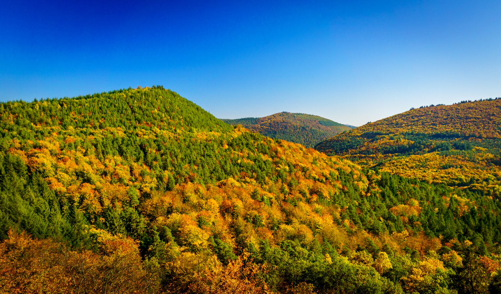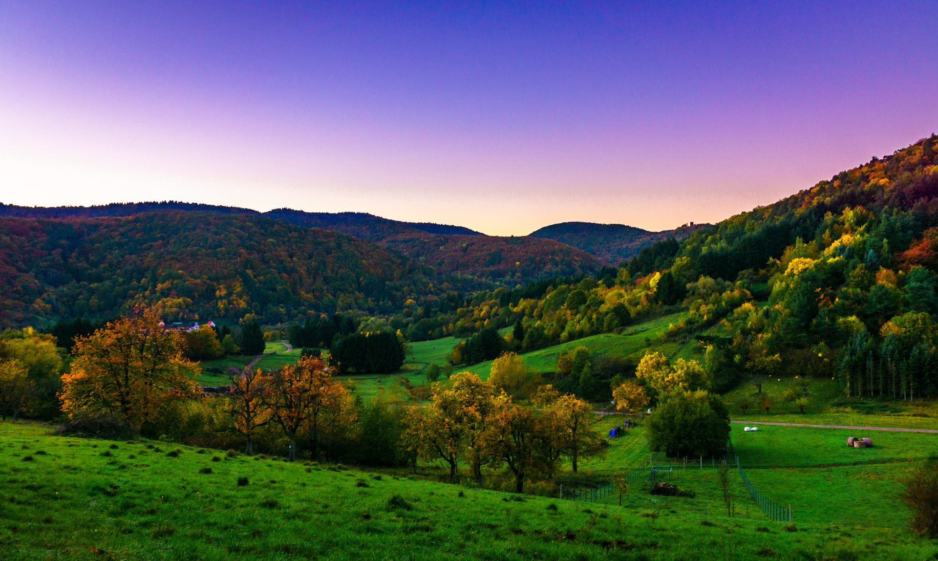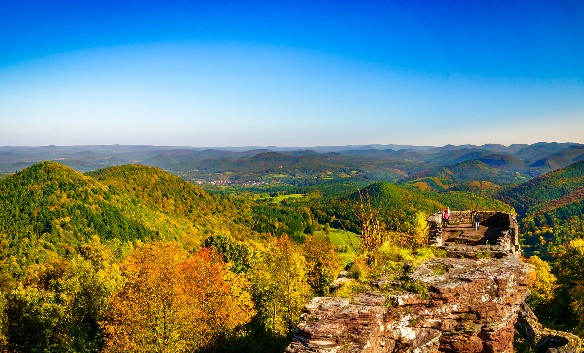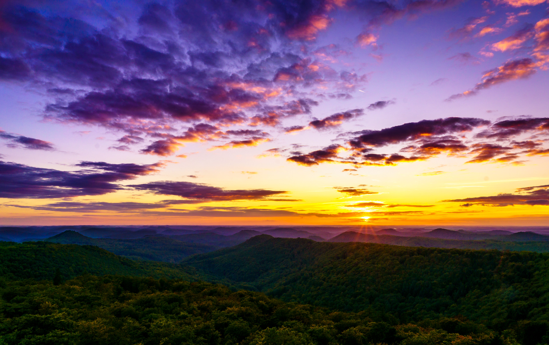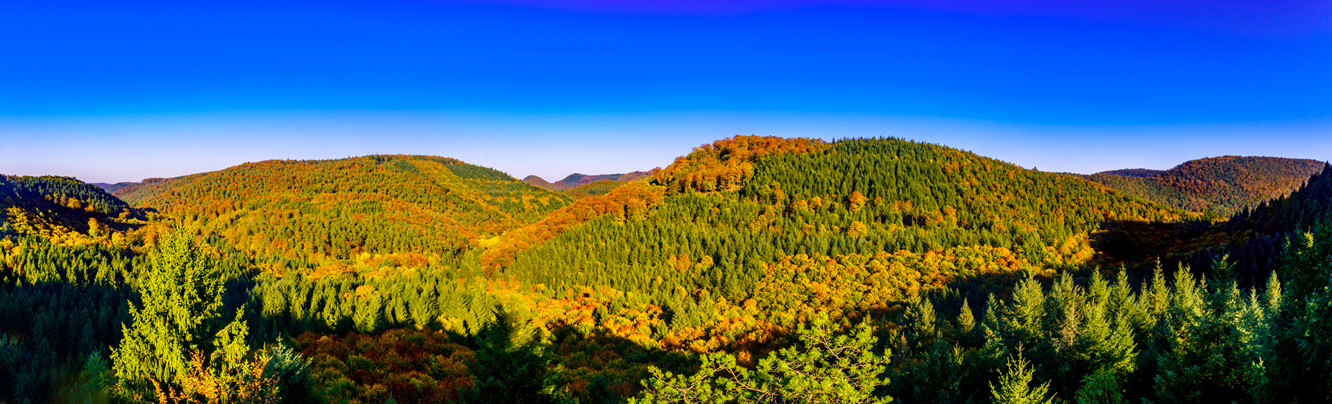 Sonnenuntergang vom Luitpoldturm (2), Dämmerung über dem Leinbachtal, Ausblick von der Wegelnburg, Herbst an der deutsch-französischen Grenze, Panorama vom Blumenstein, Vogelwoog