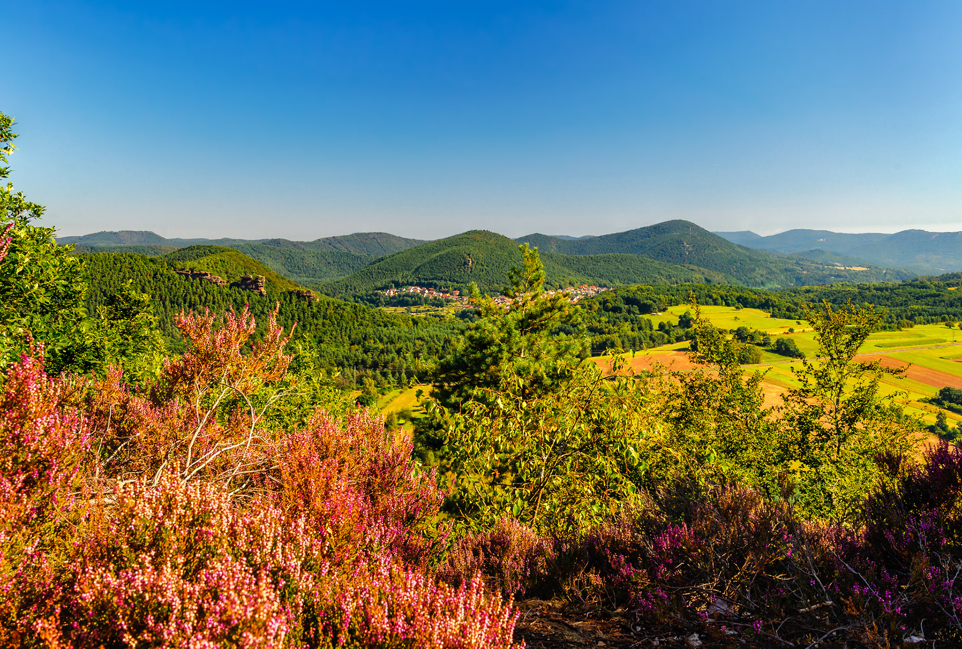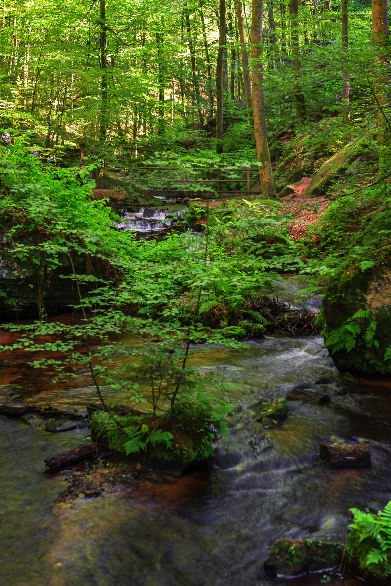 Bilder des Pfälzerwald im Juli, August und September 2016 Zufluss zur Wieslauter im September / Blick vom Dimberg im August / Karlstalschlucht im Juli
