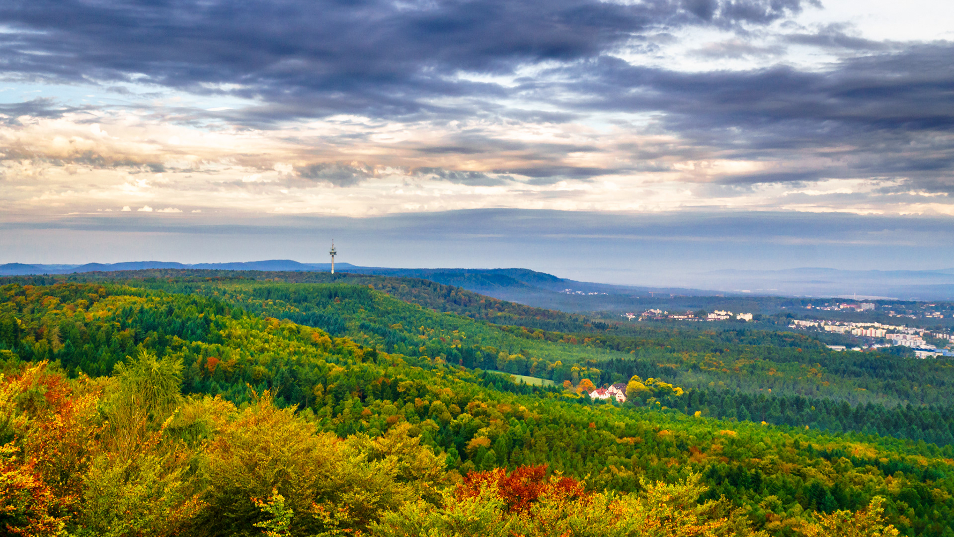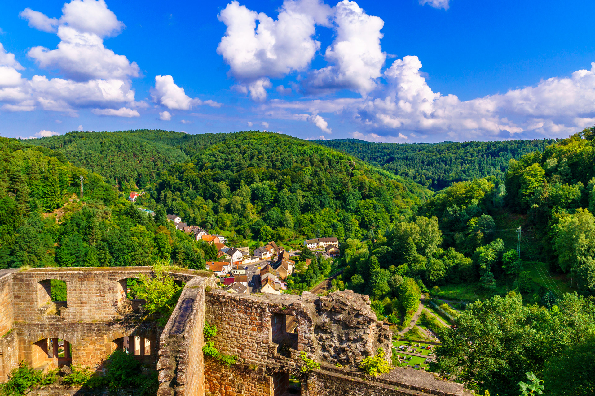 Burg Frankenstein / Wald bei Hochspeyer / Neidenfels / Wald beim Drachenfels / Eselsfürth / Blick vom Humbergturm nach Westen